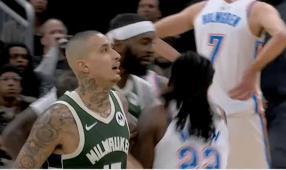 比赛第三节,波蒂斯先无球情况下肘倒华莱士,随后华莱士在走回替补席时还击波蒂斯,裁判判罚波蒂斯恶意犯规,华莱士技术犯规。